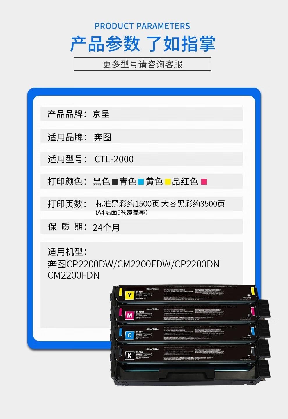京呈适用PANTUM奔图CTL-2000硒鼓CP2200DN CM2200FDN/FDW粉盒彩色 【3500页】CTL-2000 大容量青色硒鼓 单位:支