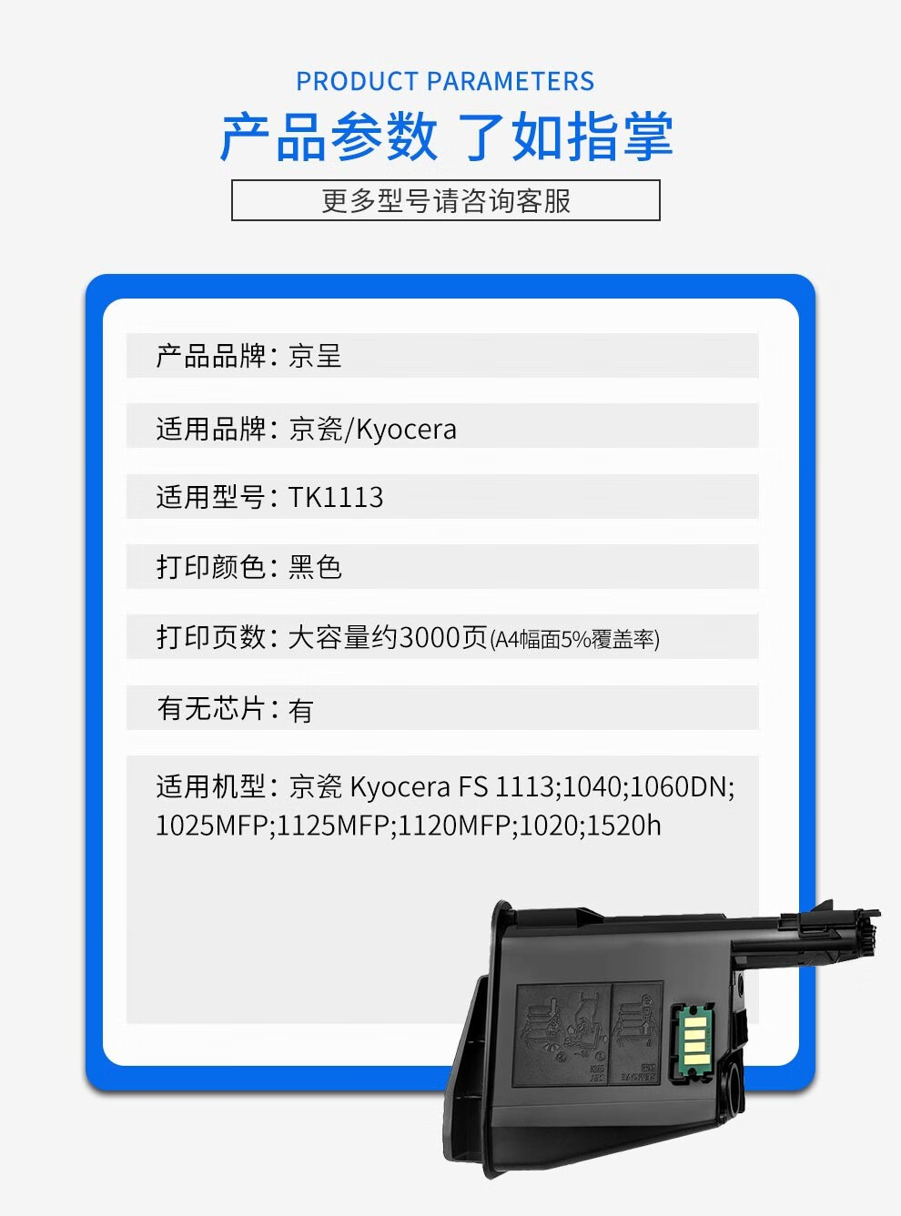 京呈TK1113适用京瓷粉盒FS-1025/1040/1020/1120MFP墨盒打印机1520硒鼓 TK1113墨粉盒2支装(大容量共200g粉) 单位:组