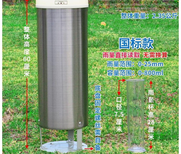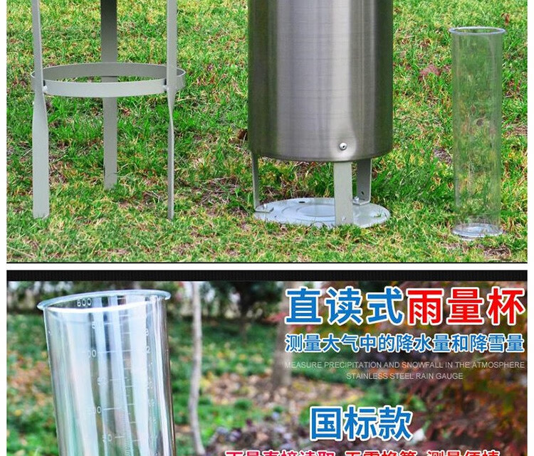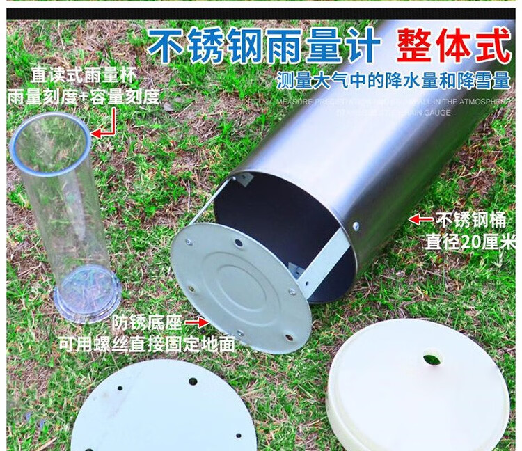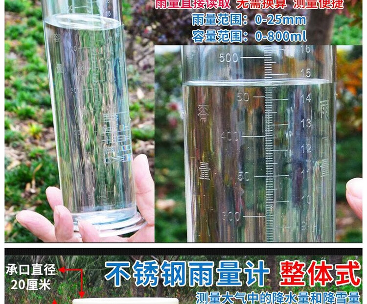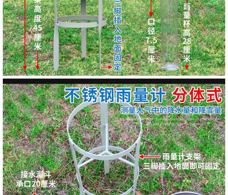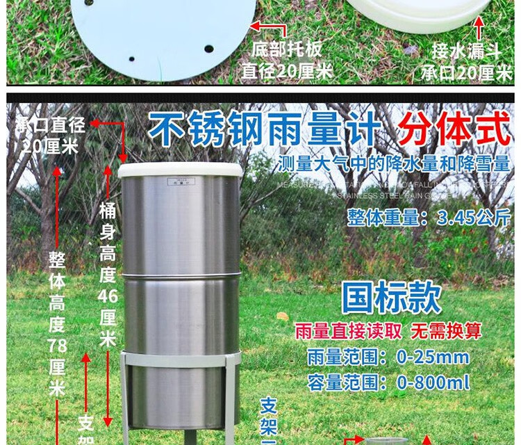 晟泰邦 雨量器量雨筒雨量计整体式200MM口径 不锈钢雨量计【分体式】+直读式雨量杯 单位:套