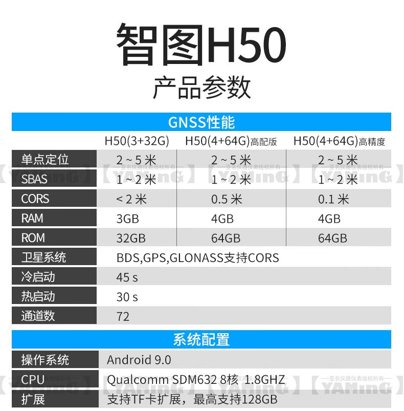 智图平板电脑H50手持GIS数据采集终端北斗GPS定位仪亚米级高精度测量工程高程测绘国土三条 H50 4+64G高精度厘米版 单位:台