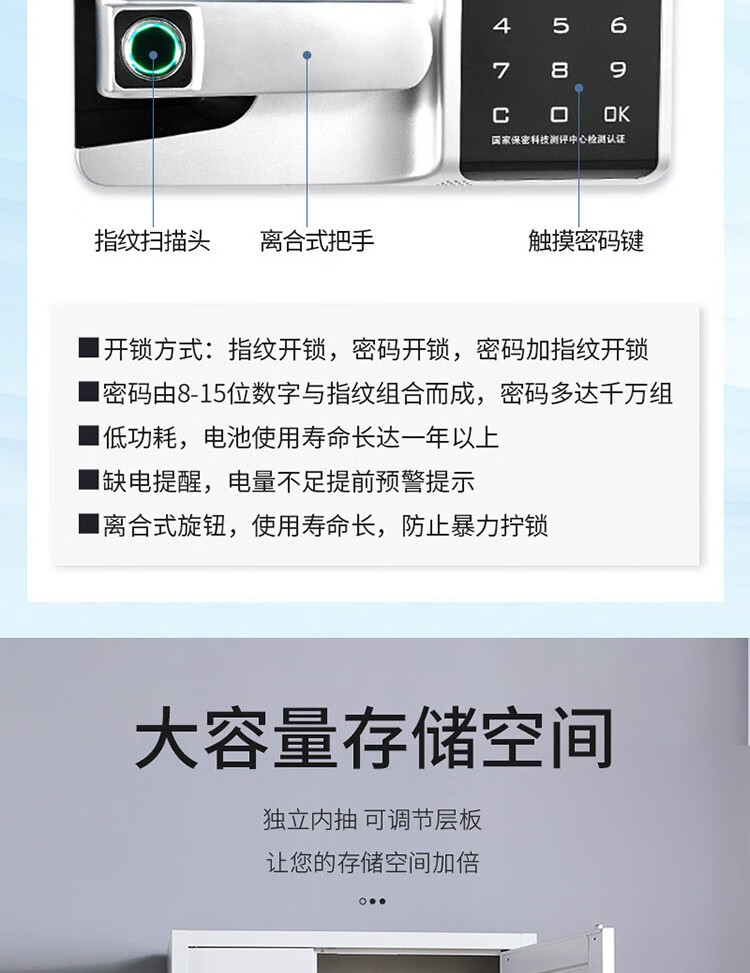晟泰邦 保密柜指纹锁白色通门密码锁文件柜财务档案柜双锁保管箱办公室(指纹锁白色通门)单位:个