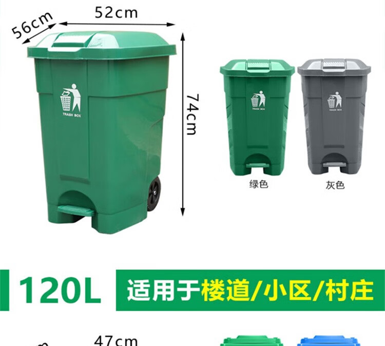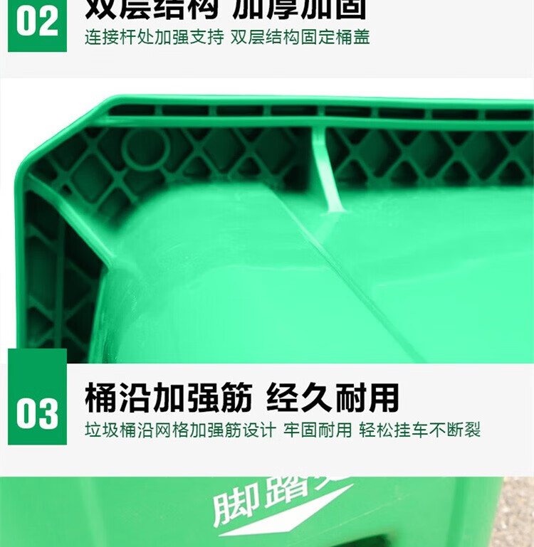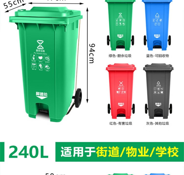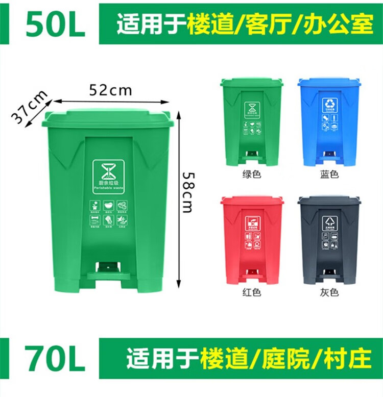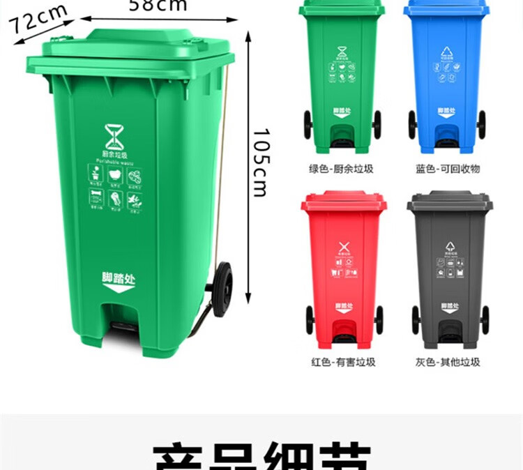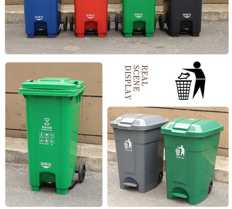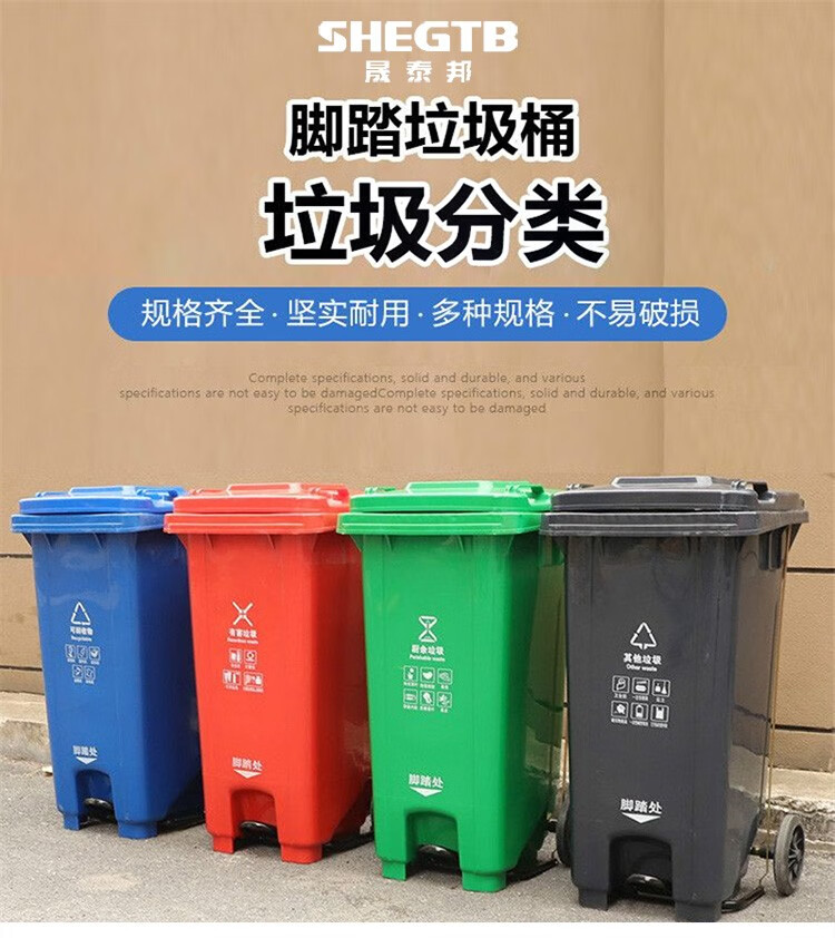 晟泰邦 升脚踏分类垃圾桶大号户外商用带盖环卫物业 80升绿色特厚中间脚踩 颜色可选 单位:个
