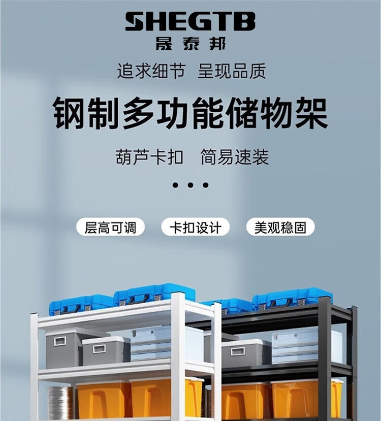 晟泰邦 货架置物架仓储家用仓库多层展示架中型角钢货架地下室储物架6层 六层236cm【白色】 长150宽50cm 单位:个