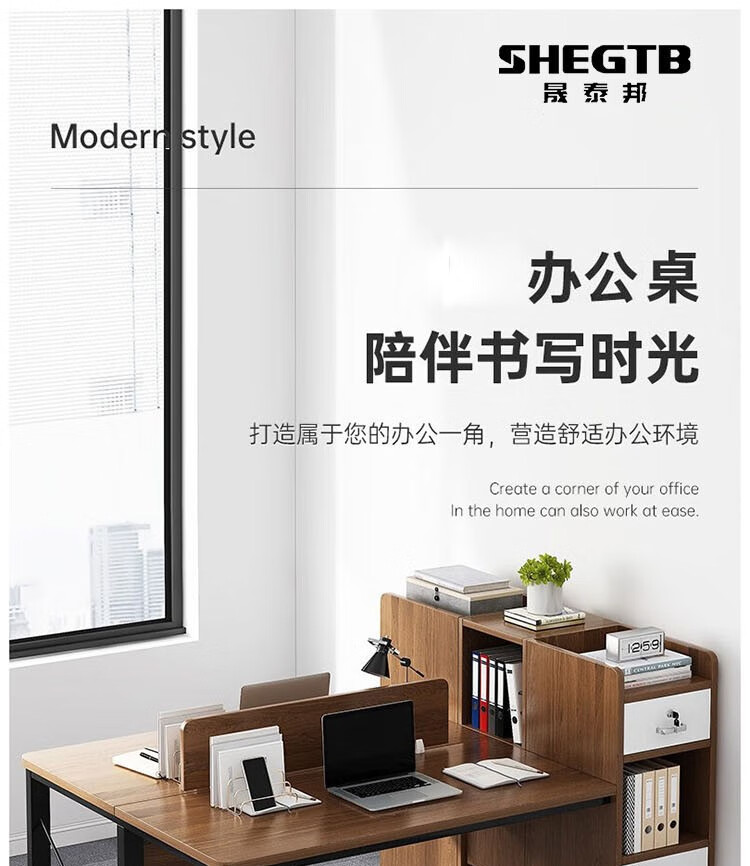 晟泰邦 职员办公桌电脑桌简约现代员工办公桌2/四人位桌椅组合电脑桌子 【双人位】原野橡木色150cm 单位:个
