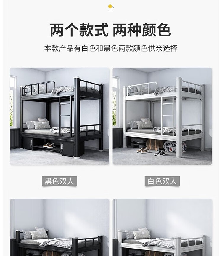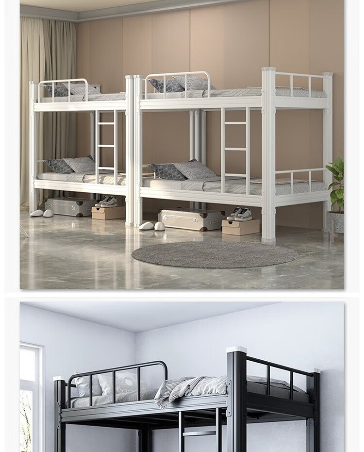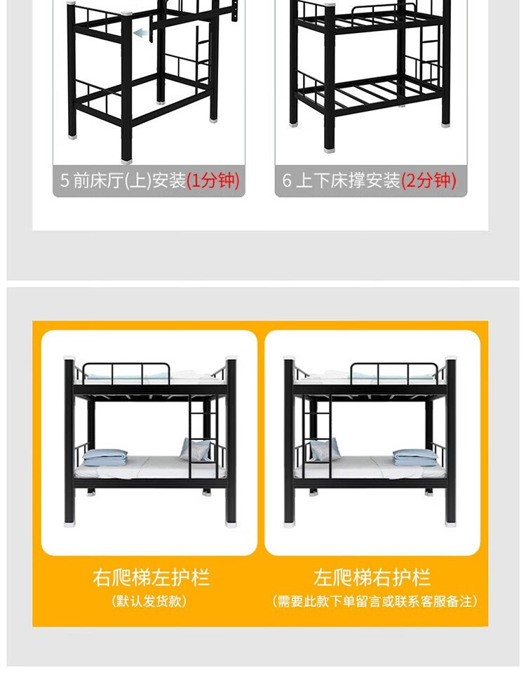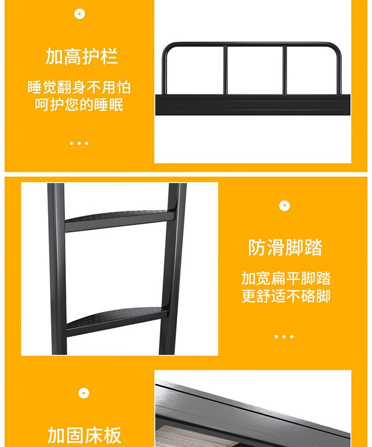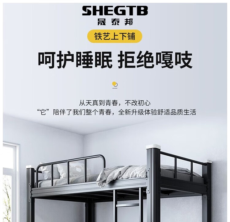 晟泰邦 上下铺铁艺双层床员工高低床宿舍寝室成人铁架子床钢制加高护栏 1.2米宽黑色加厚款 单位:个