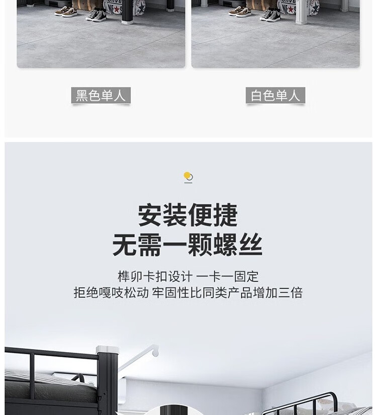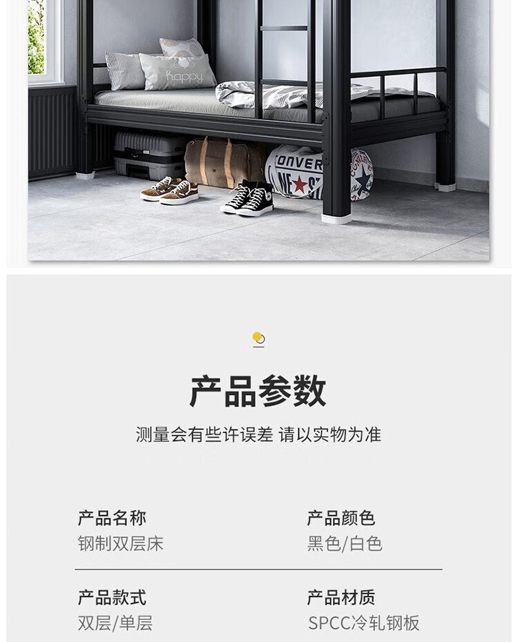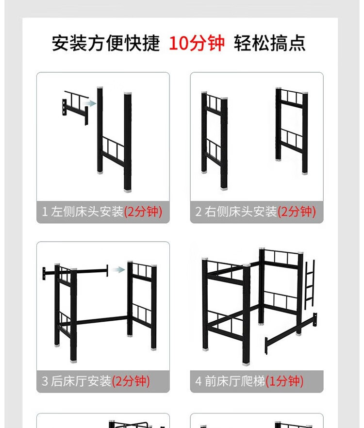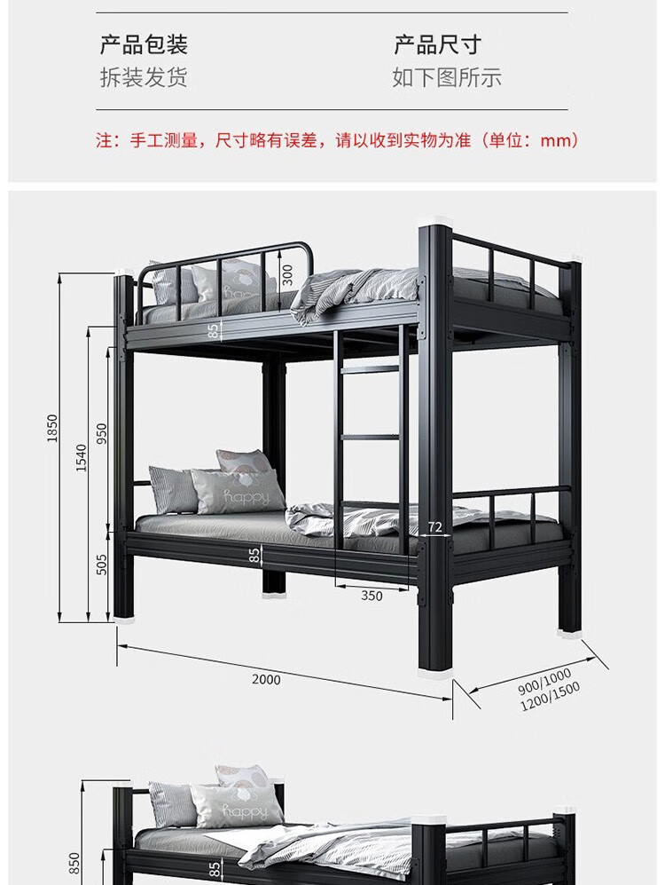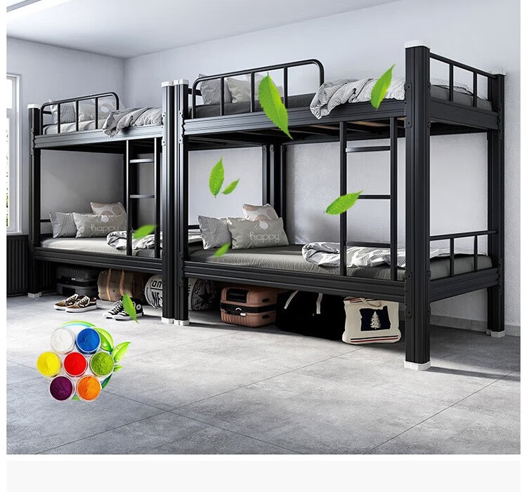 晟泰邦 上下铺铁艺双层床员工高低床宿舍寝室成人铁架子床钢制加高护栏 1.2米宽黑色加厚款 单位:个