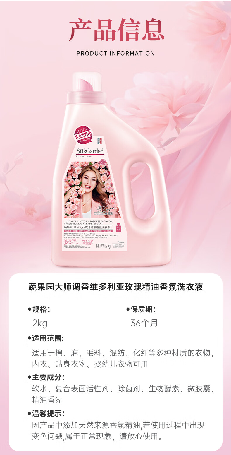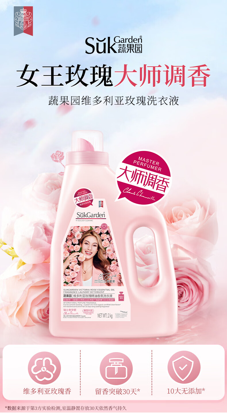蔬果园(SukGarden)香水香氛洗衣液除菌除螨洗衣持久留深层洁净柔顺衣物家庭装 香水洗衣液4斤装 除螨抑菌 单位:瓶