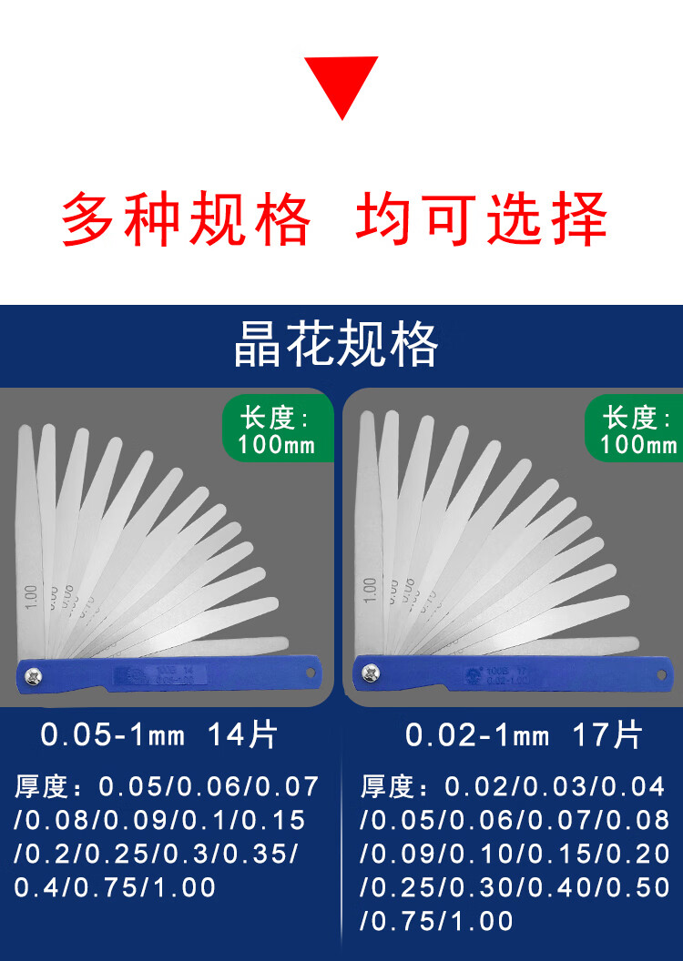 哈量晶花塞尺高精度塞规薄厚规0.02-1mm100 150 200 300 14片17片 300mm*17片(0.02-1mm) 单位:套