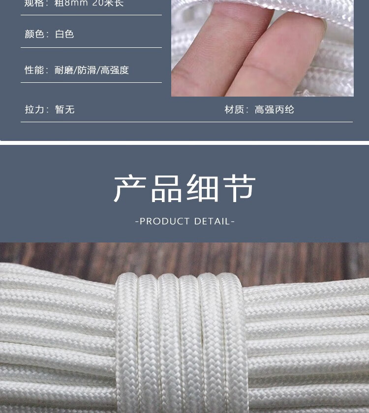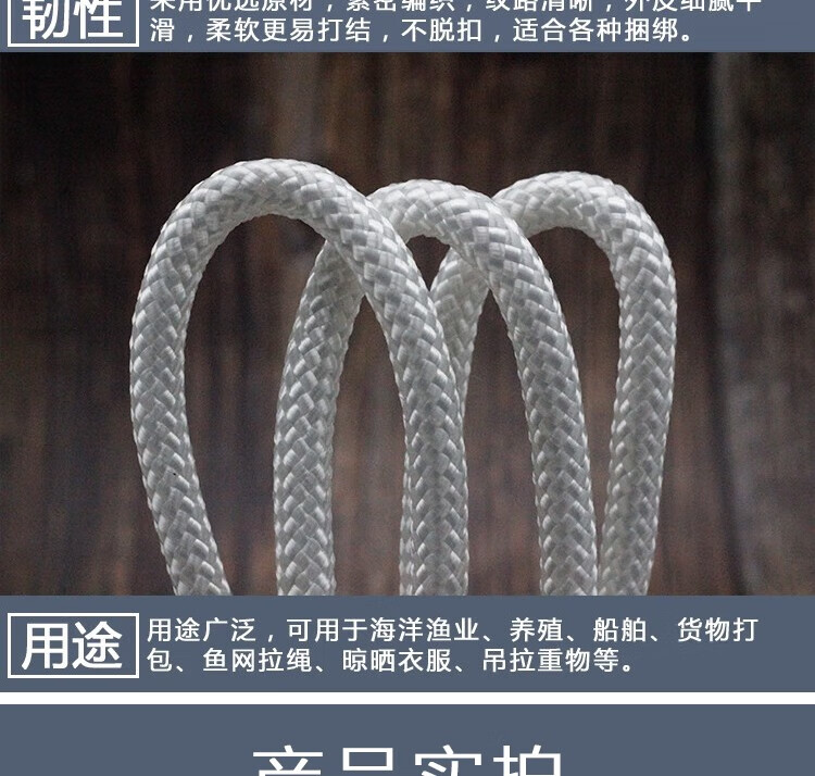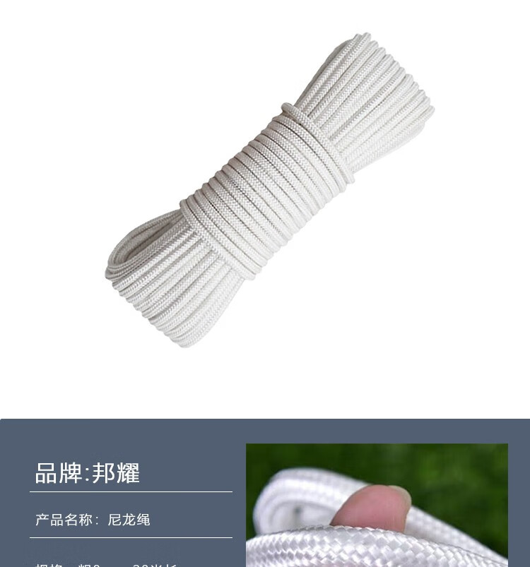 邦耀 尼龙绳捆绑绳帐篷绳户外编织粗细绳晾衣绳安全绳 8mm粗 30米长 单位:根