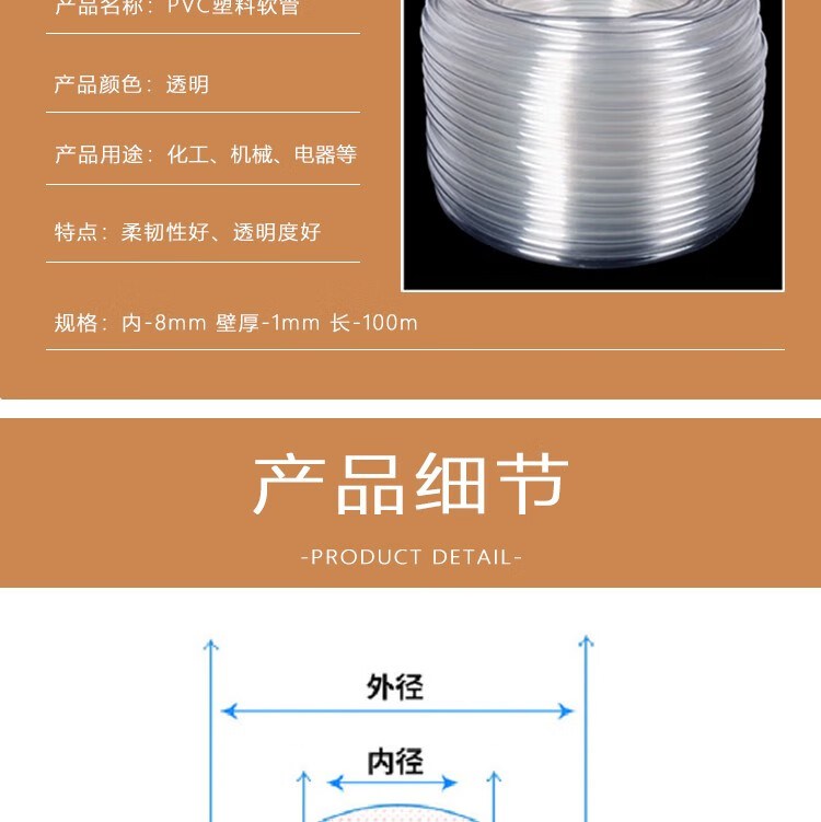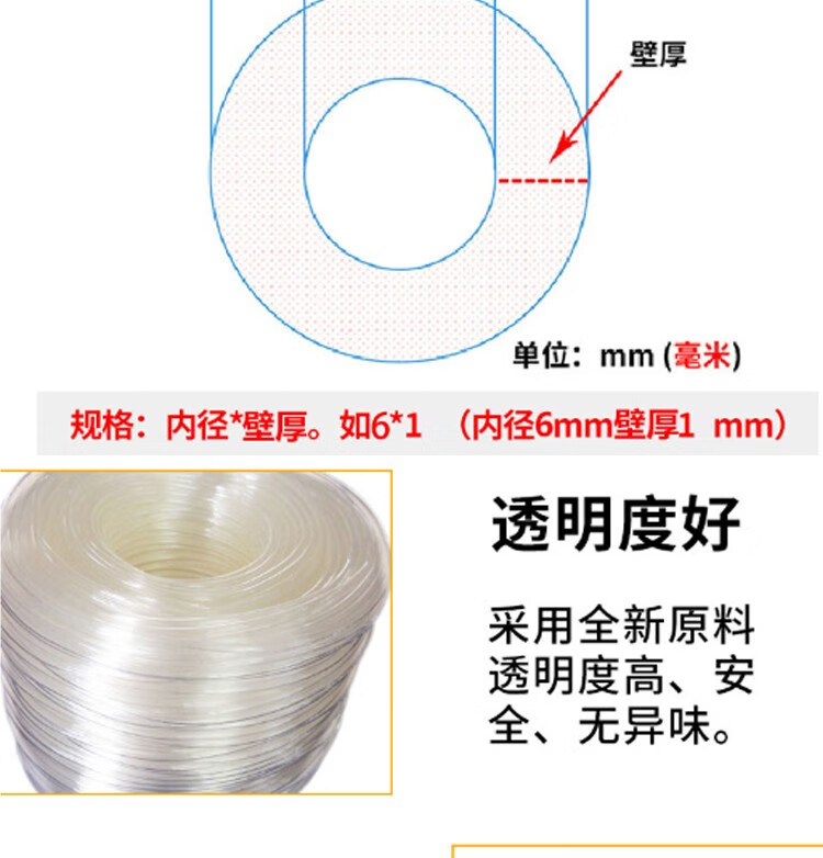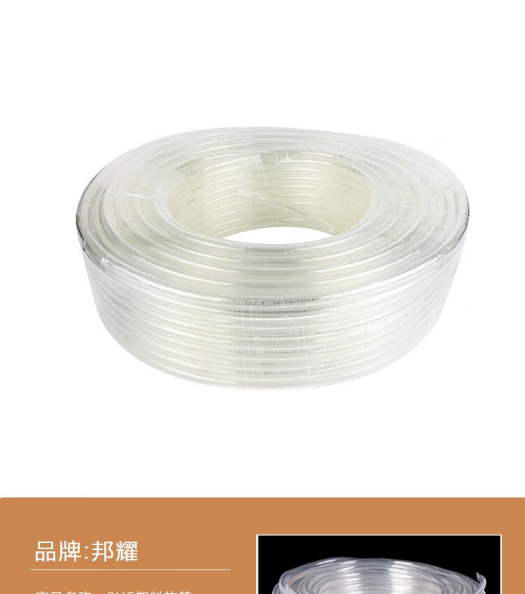 邦耀 PVC透明软管水管水平管塑料管 抽油管套管 内径8mm壁厚1mm 100米 单位:卷