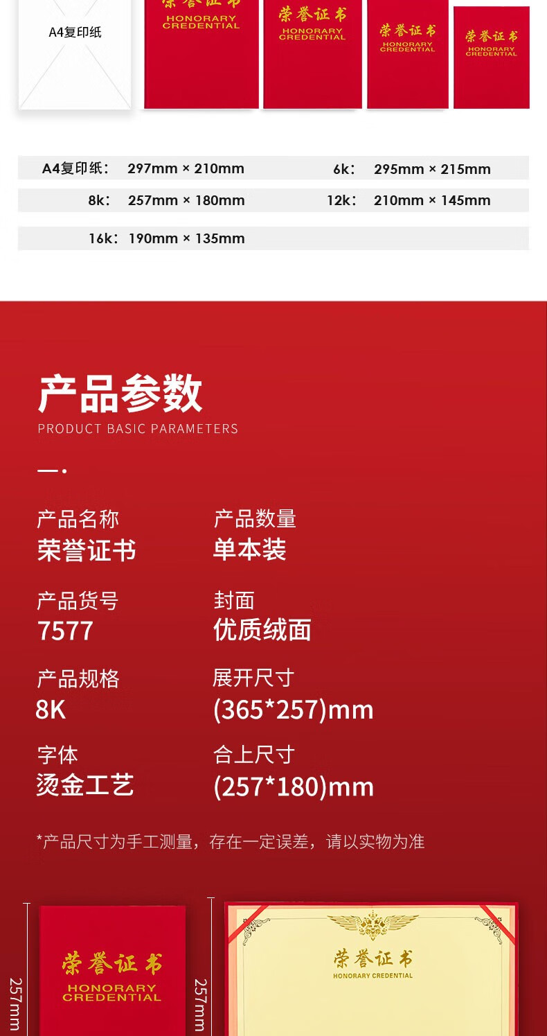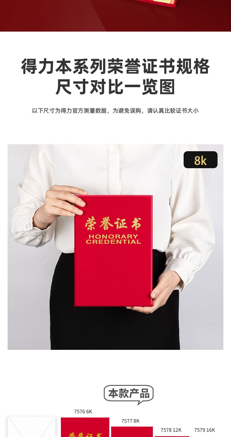 得力(deli) 聘书 绒面聘用书 绒布烫金任命书 聘任书委任状荣誉证书内芯 6K荣誉证书(295*210mm) 7576 单位:本