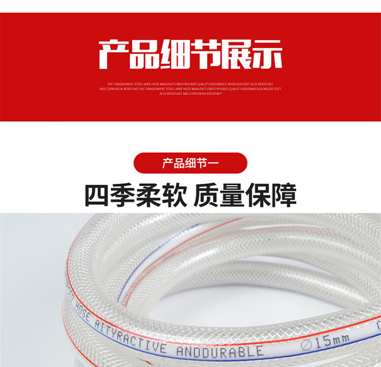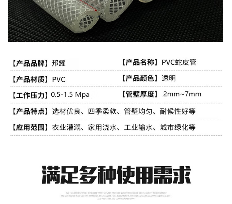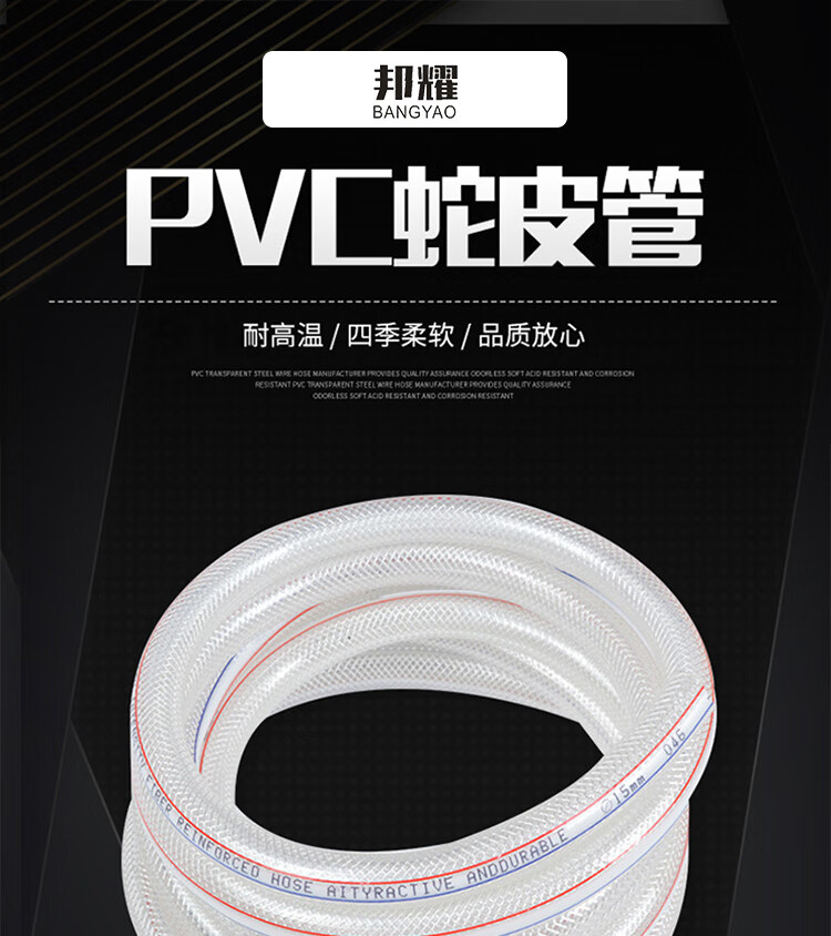 邦耀 PVC蛇皮管 纤维增强网纹 内径40mm壁厚4mm【加厚】50米 单位:卷