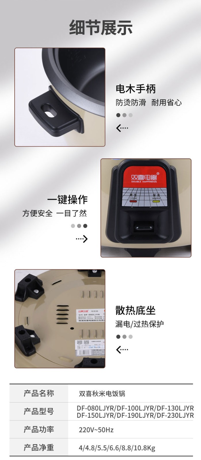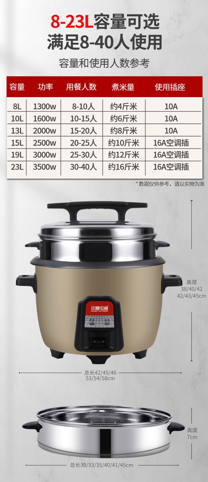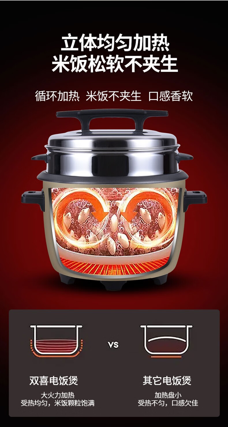 双喜 电饭煲电饭锅商用大容量电饭煲老式 电饭锅不粘内胆带蒸笼 13L适用15-20人 单位:个