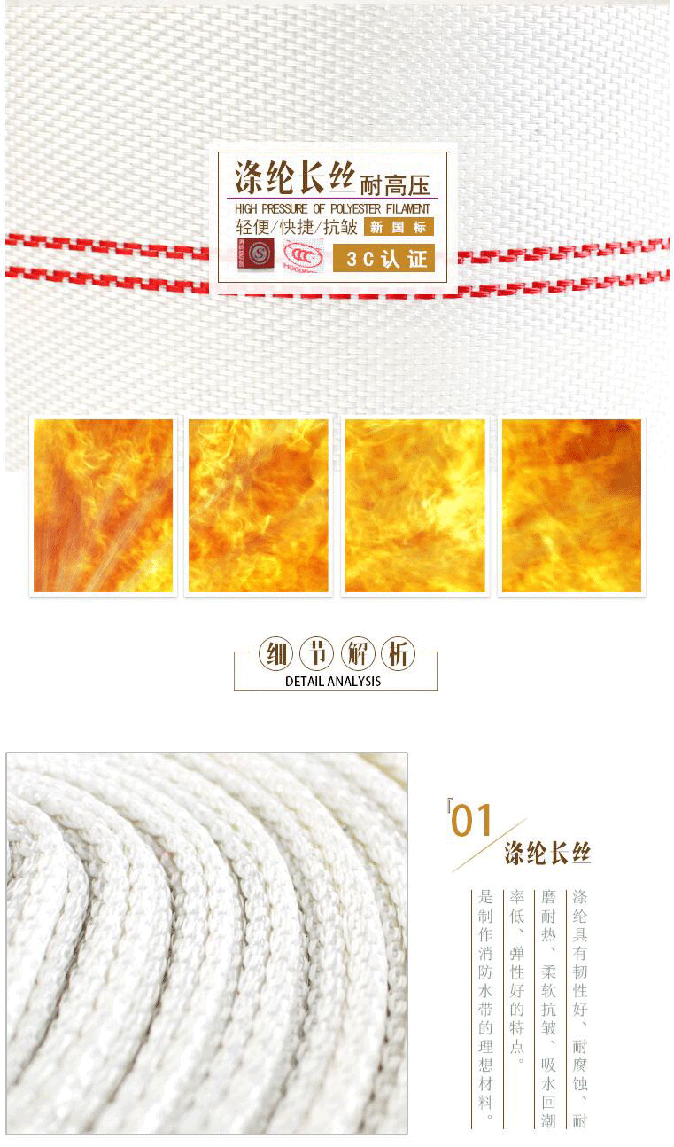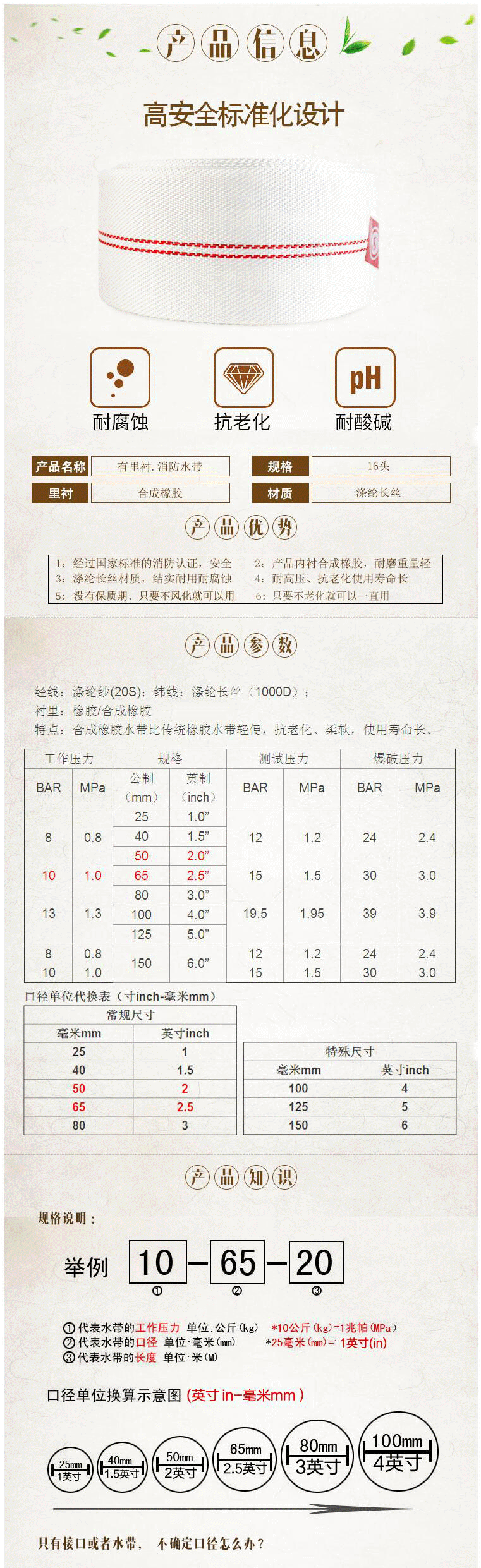 谋福 8493 抗高压耐磨水管消防水带水带接扣 消防认证 DN65 (8型65mm 长25米 已接好接口)单位:卷