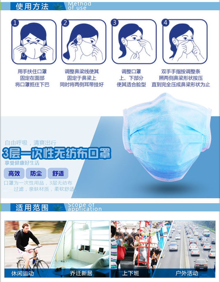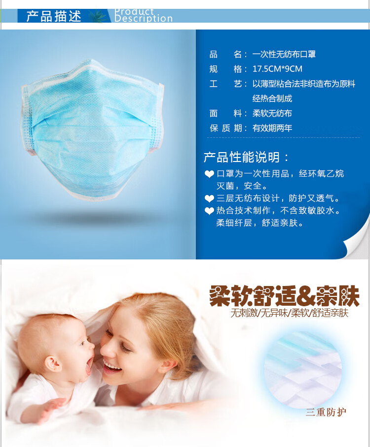 谋福CNMF一次性三层无纺布口罩 【一次性口罩(欧盟认证)】771 1000个起订 单位:个