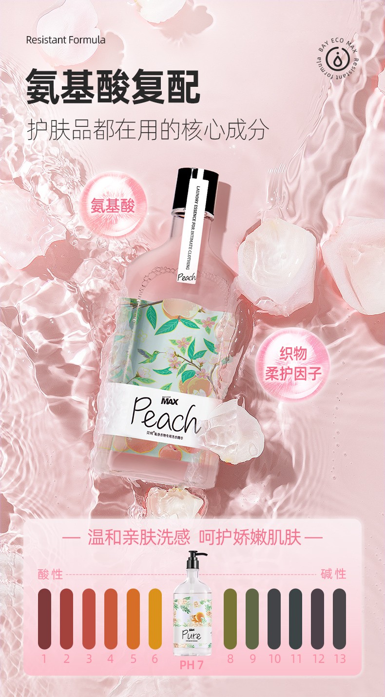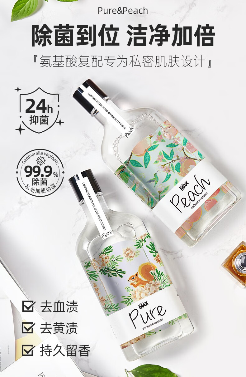 贝纯洗衣液内衣内裤专用女士生理期去血渍白带易漂洗无残留内衣手洗专用洗衣液 【蜜桃花源】350g*1瓶 3瓶起订