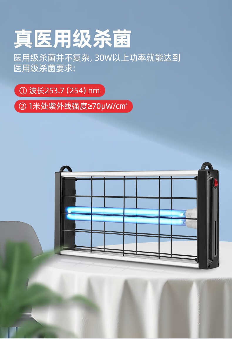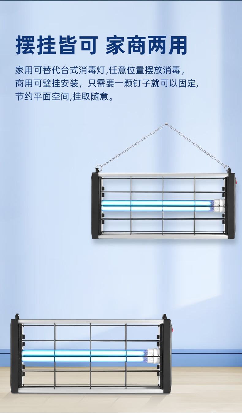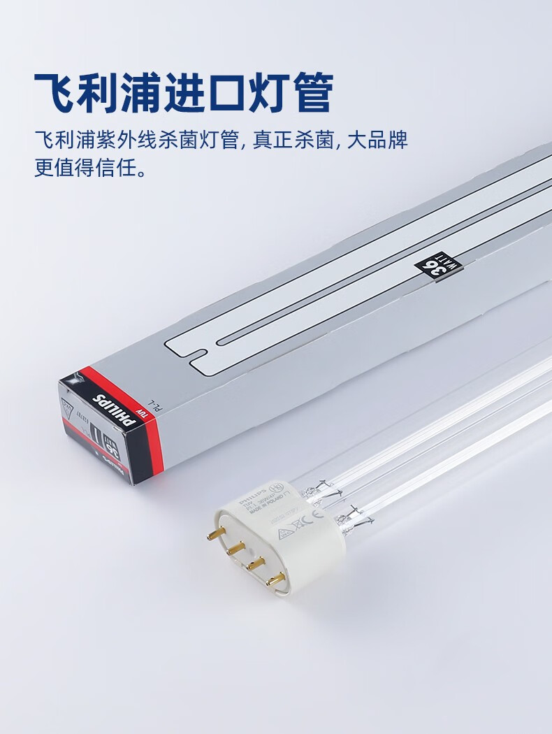 飞利浦(PHILIPS)紫外线消毒灯家用悬挂式杀菌灯学校室内紫外线灯诊所医疗除螨灭菌 遥控定时 40W 配国产灯座+吊链 单位:个