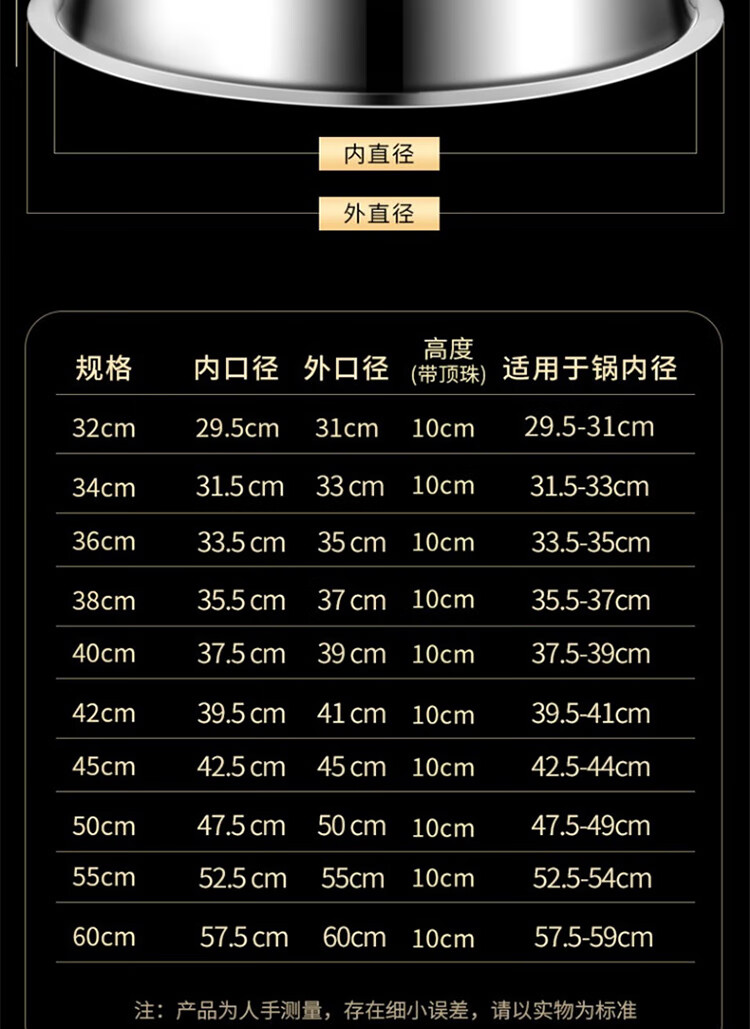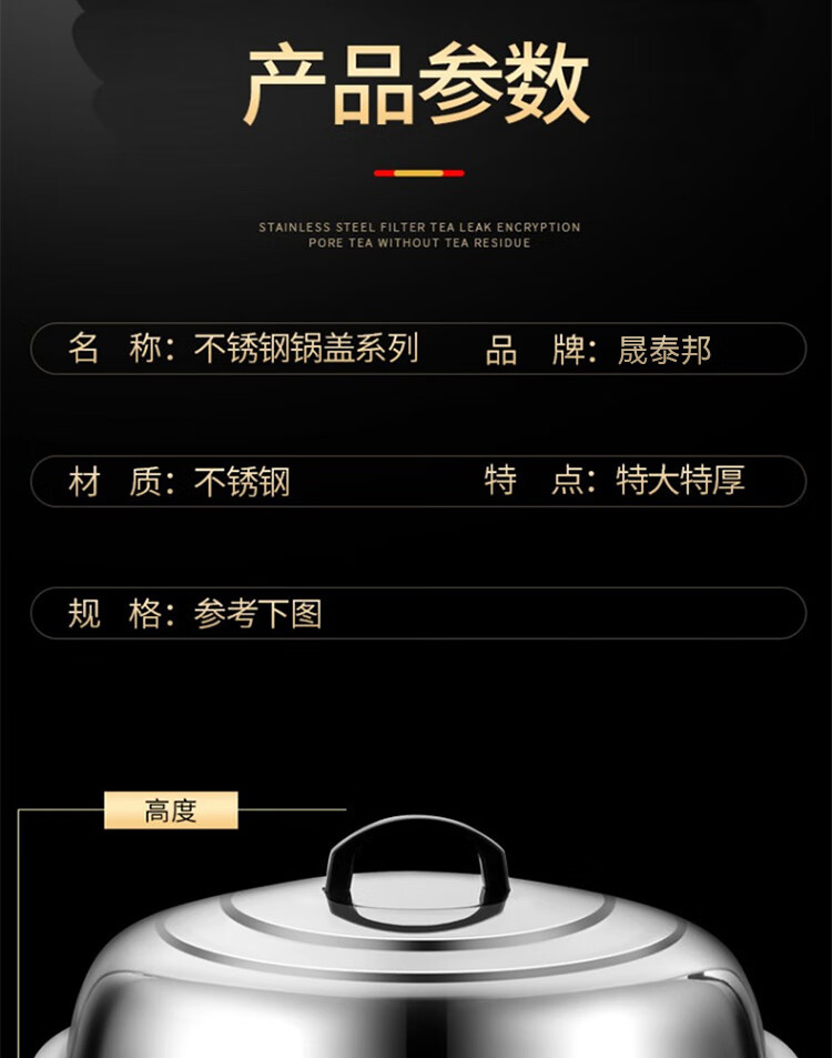 晟泰邦 锅盖家用不锈钢 锅盖 加厚加高42cm 适用锅内口径38-39cm 单位:个