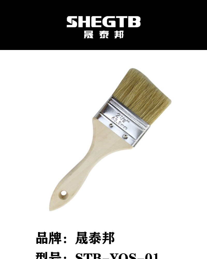 晟泰邦 STB-YQS-01纯水煮猪鬃毛刷 木柄油漆刷 2.5寸(62mm) 20把起订