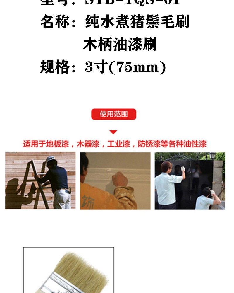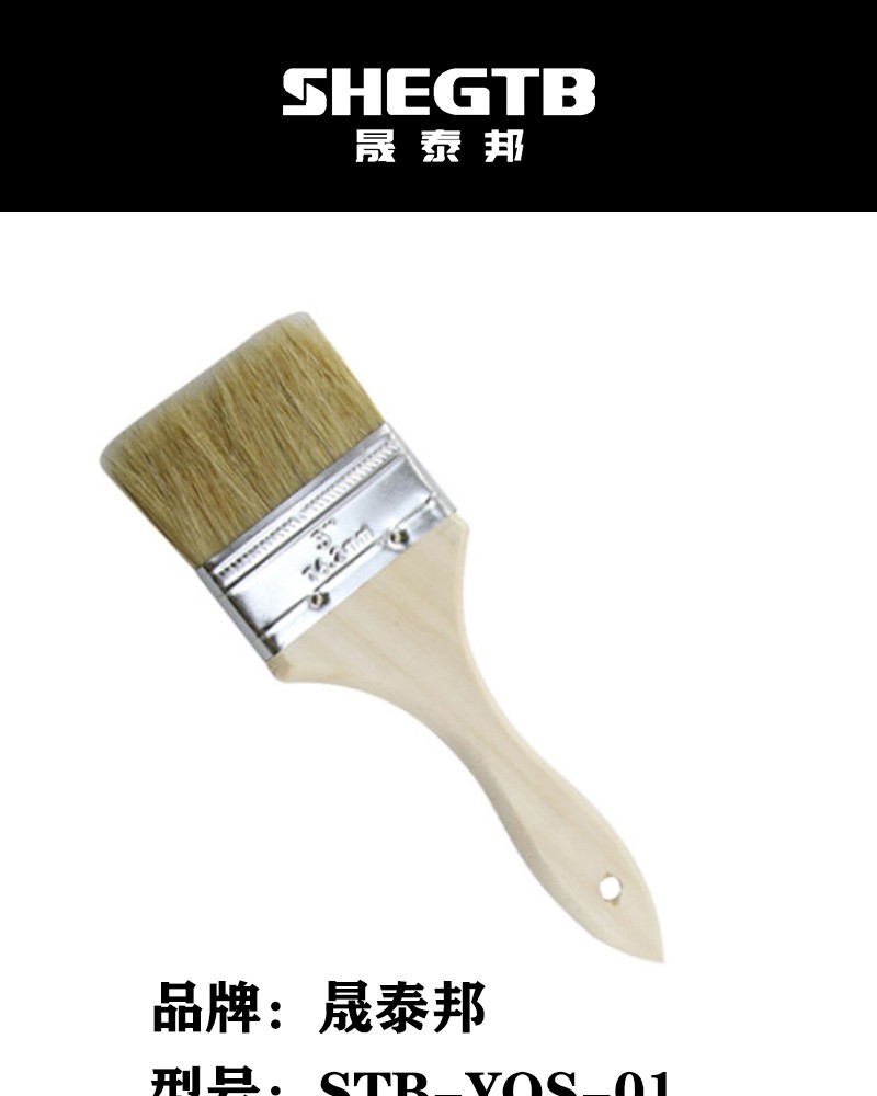 晟泰邦 STB-YQS-01纯水煮猪鬃毛刷 木柄油漆刷 3寸(75mm) 单位:把 20把起订