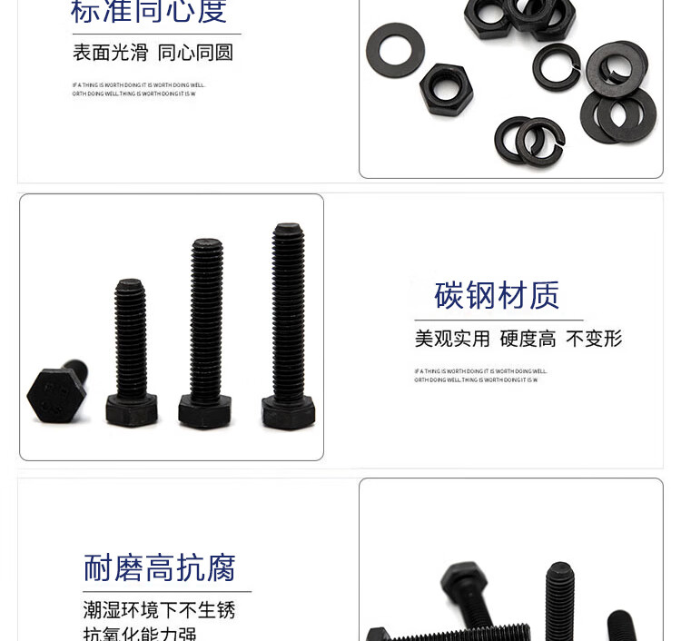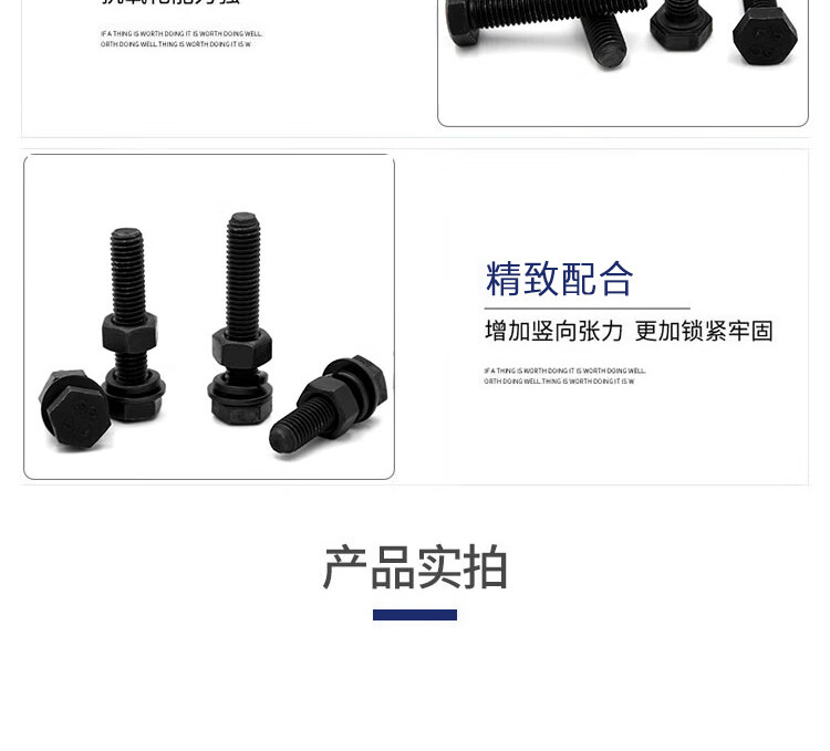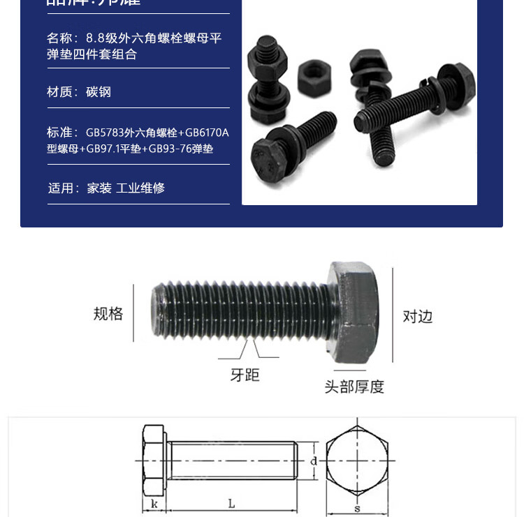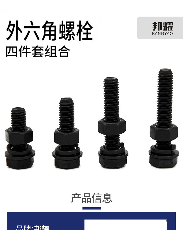 邦耀 外六角螺丝螺母平弹垫四组合 8.8级发黑(淬火)16×60 单位:套