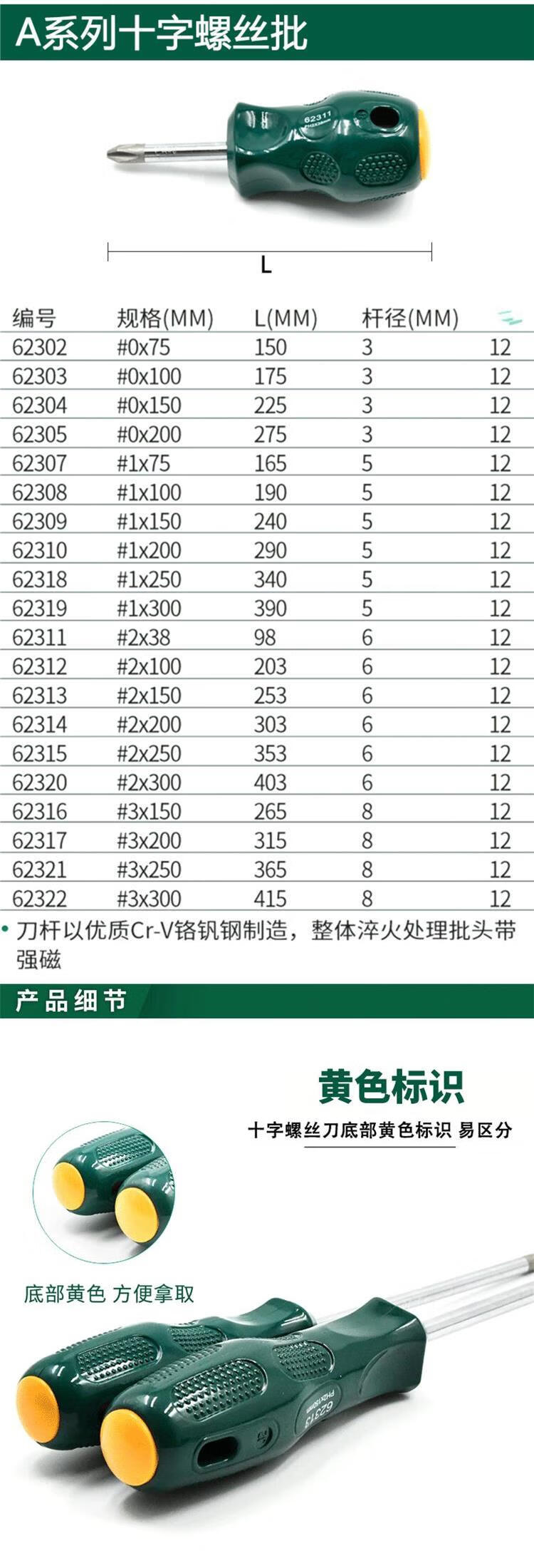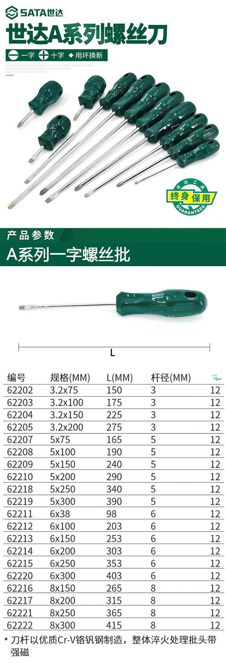 世达(SATA)工具一字螺丝刀工业级起子改锥平口A系列一字形螺丝批 62212 6x100MM 单位:把