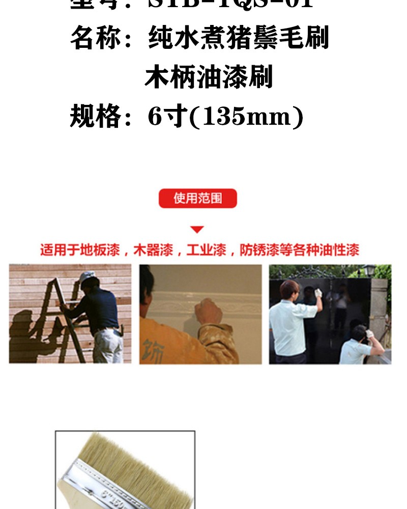 晟泰邦 STB-YQS-01纯水煮猪鬃毛刷 木柄油漆刷 6寸(135mm) 10把起订